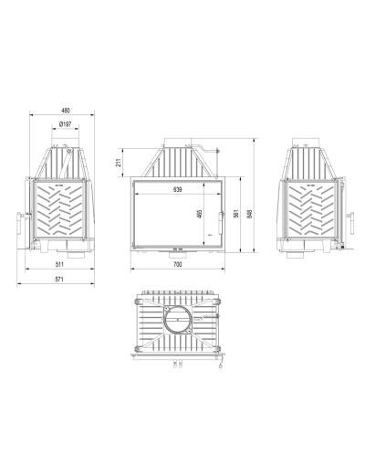 Extrase:Clapeta de tiraj , Deflector pentru extinderea traseului fumului si imbunatatirea schimbului termic , Cenusar pentru o curatare facila , Dotat cu admisie din exterior si interior