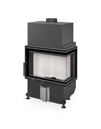 Focar semineu Romotop HEAT R 4G 60.44.33.24(26) cu geam de colț si deschidere pe balamale spre dreapta și interior durabil numit Igniton.