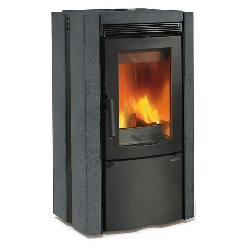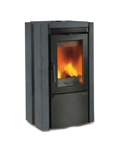 Soba Ester are căptușeală interioară din fontă și Nordiker, sertar pentru cenușă, aer primar și secundar reglabil, post-combustie, înveliș exterior din rocă vulcanică cu avantaje estetice deosebite și proprietăți de acumulare căldură remarcabile.